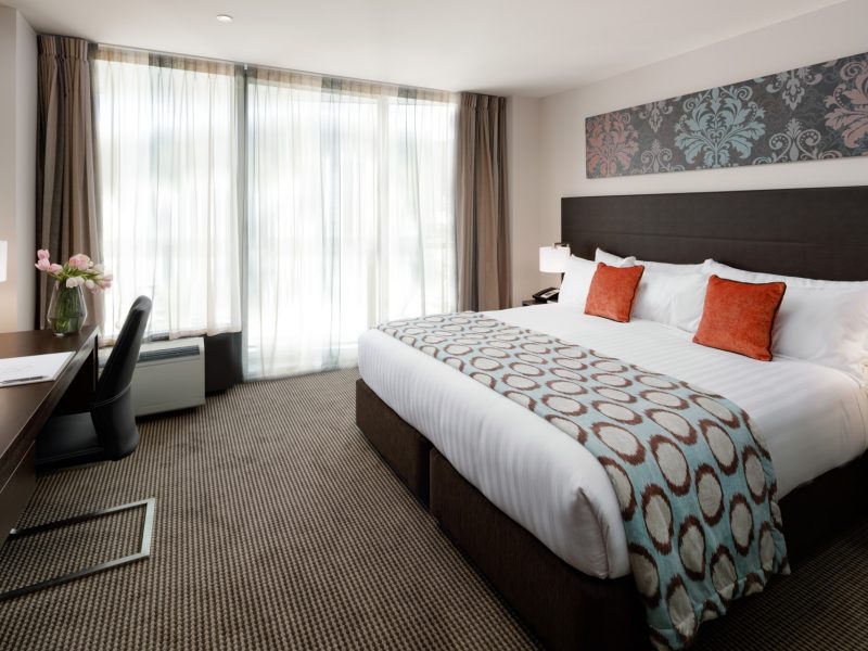 Each guest has access to our leisure centre sporting a heated 17m pool, sauna and gym – take in to account the amazing food in the hotel restaurant and room service, it could be difficult to leave at all. Sleep in a full king sized Rydges Dream Bed, 24 hour room service, individually controlled heating, kitchenette with hob stove top and cookware on request, FREE WI-FI internet, in-room safe, mini bar and more! Facilities: Kitchenettes with microwave, Cookware on request, Toaster, Air-conditioning, Free WI-FI internet access, Voicemail, Mini bar, Hairdryer, Flat screen TV, Sky movies, Coffee Plunger, Phone, Work space, Bath tub, 24 hour room service, Mini fridge, Plates and cutlery, All rooms non-smoking, Laptop Safe